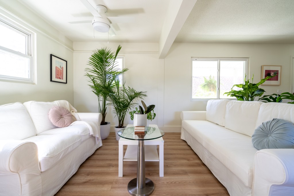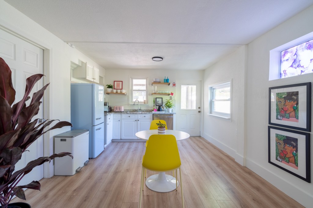 The idea was to create a short-term co-working / co-living space to rent. Taking advantage of the ample space and natural lighting, we changed the paint color, the floor, closet doors, and appliances. In addition, we did some modifications to a wall where we created an opening to open up the space and bring natural light to the entrance of the first floor.
